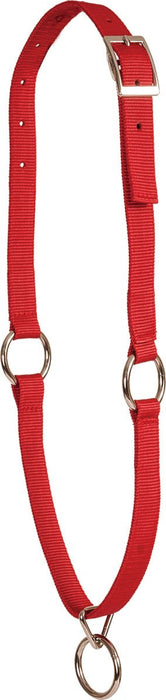 1" wide poly web collar with nickel plated buckle and ring. Great for leading or use with a picket line and a swivel snap lead. Can also be used while supervised on a cross-tie for ease in grooming and trimming as you have free access to all of the head. 44" long, horse size.