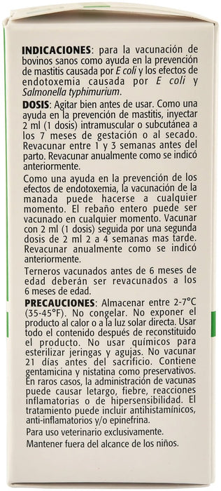 As an aid in the prevention of the effects of endotoxemia, whole herd vaccination may be done at any time. Vaccinate with 2 mL (1 dose) followed by a second 2 mL dose 2 to 4 weeks later. Revaccinate annually.