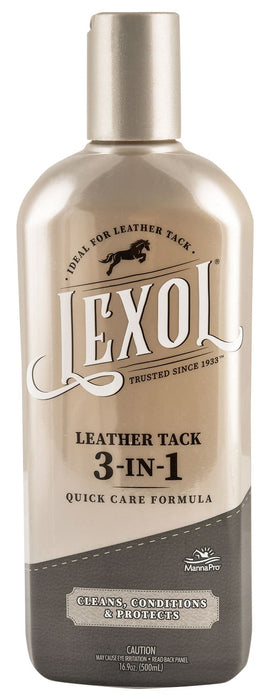 Lexol Leather Tack 3-in-1 cleans, conditions, and protects your leather products in one easy step. Lifts dirt effectively yet gently and will also help to soften stiff leather. Lexol 3-in-1 also protects your leather goods from the drying and bleaching effects of the sun.