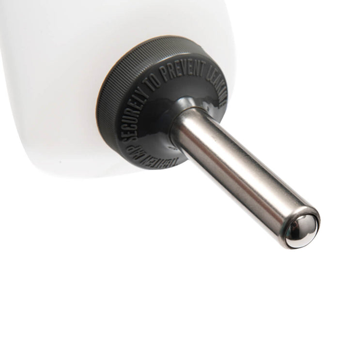 The Lixit Plastic Water Bottle and Tube offers a clean and convenient water source for large breed dogs. Easily mountable to your pet's cage, kennel, or fenced area with the included wires, this water bottle is designed for practicality and hygiene. Made from BPA-free plastic, it features a 3.5" premium stainless steel double ball-point drinking tube and a wide mouth for easy cleaning and filling.