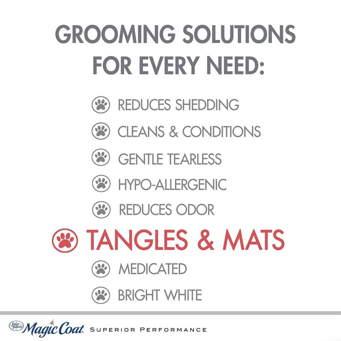 For over 40 years, Four Paws has simplified pet parenting by providing the highest-quality products to keep fur friends happy, healthy, and clean! Reduce and easily remove tangles and mats from your best friend with the help of Magic Coat Detangling Shampoo for Dogs. Infused with green tea extract, antioxidants, and Vitamins C & E, this dog shampoo strengthens and conditions the coat to help reduce tangles. The formula of the dog detangling shampoo also smooths hair to prevent breakage while brushing through mats and knots. The result is a shiny, soft coat with a lovely Violet scent. Free of parabens and dyes, this 16 ounce bottle of shampoo for dogs is proudly made in the USA!