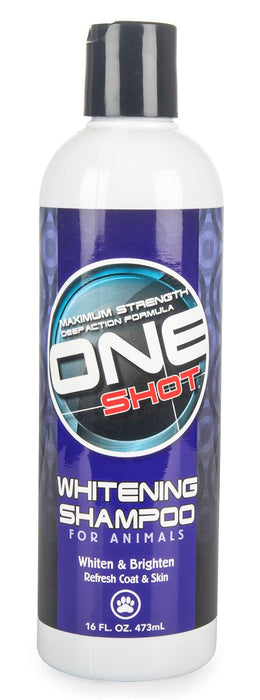 Dirty jobs done right! Whiten & brighten any color coat! One shot whitening shampoo deep cleans and brightens coats, manes and tails. Restores your animal's hair to its natural color and vibrancy while keeping it soft and manageable.