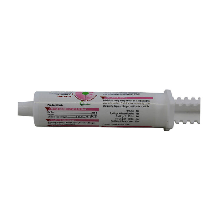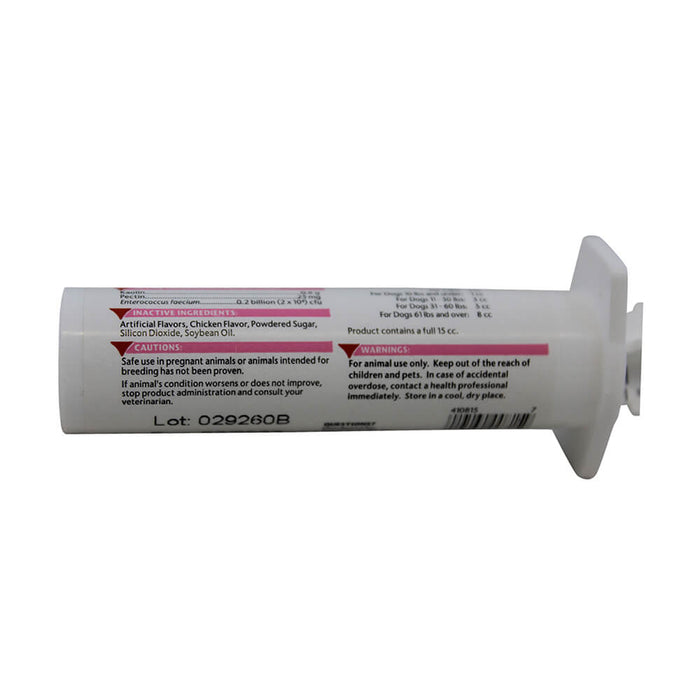 Pro-Pectalin Gel contains kaolin, pectin, and Enterococcus faecium, a beneficial bacteria that helps resolve diarrhea caused by stress, antibiotic administration, dietary changes, or other simple, non-life-threatening forms of diarrhea. Its unique combination of ingredients works to safely stop diarrhea, soothe irritated intestines, and restore the normal balance of intestinal bacteria.