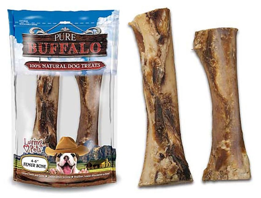 Pure Buffalo - Femur Bones are sourced from the finest quality free-range and grass-fed Buffalo! These treats offer a healthier, leaner alternative to beef. Pure Buffalo also promotes dental health by massaging gums and controlling tartar. Treat your pet to Pure Buffalo today and provide hours of enjoyment!