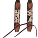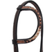 Peppered cowhide and basketweave! The Rafter T Peppered Hide Single Ear Headstall features a hair-on overlay that is trimmed in copper dots and has basketweave ends. Made with buckles at both cheeks and water tie bit ends.