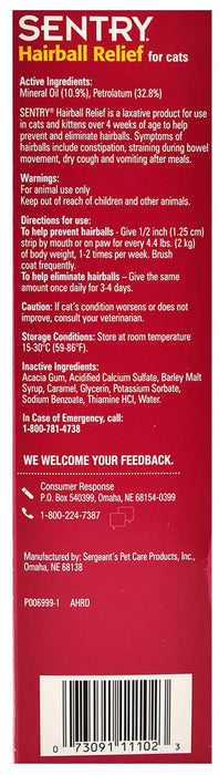 Sentry Petromalt Hairball Relief original Malt Flavor Formula is an intestinal lubricant that helps relieve constipation, dry cough, and occasional vomiting associated with hairballs. It is also a gentle laxative that helps prevent the formation of hairballs and eases the passage of hair that is ingested. Easy to use, just administer the paste orally. Even the pickiest eaters love the malt taste. It is safe and effective for cats and kittens over 4 weeks of age.