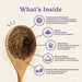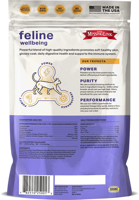 Ultimate Feline Formula contains freeze dried: liver, bone, fish meal & oyster plus 250 mg of Omega-3 per ¾ tsp.