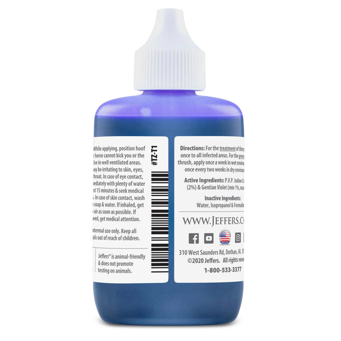 This product contains iodine, which is effective in killing bacteria and fungi responsible for thrush. However, iodine may cause staining and should be used with caution around light-colored hooves or tack. Individuals or animals with iodine sensitivities should avoid use or consult a veterinarian before application.