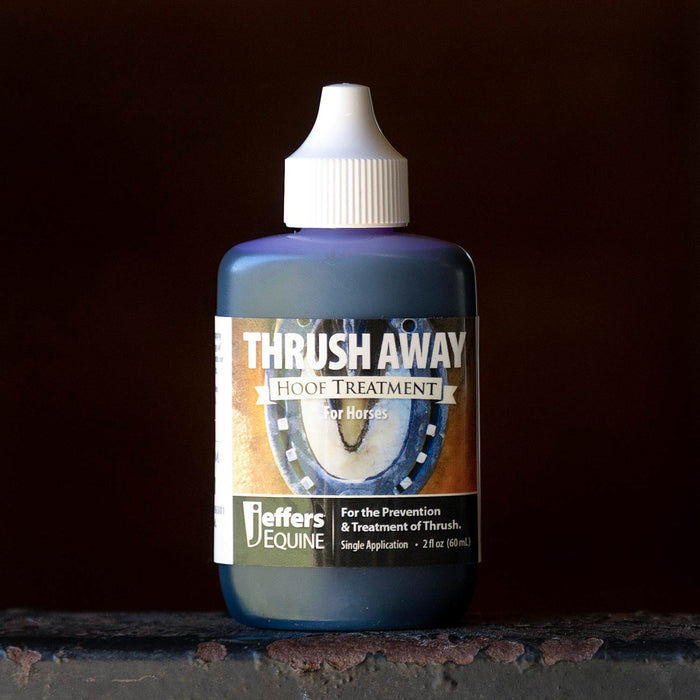 Jeffers Thrush Away is a powerful, single-application treatment designed for the prevention and treatment of thrush in horses. This trusted formula helps eliminate thrush quickly and effectively while toughening hooves. It may also be used under pads for added protection in high-moisture conditions. A proven solution for long-lasting hoof health, Jeffers Thrush Away offers a reliable defense against common hoof issues.