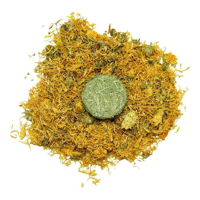 100% All-Natural Ingredient List: 100 % All-Natural Premium Sun Cured Timothy Hay, and Calendula.
