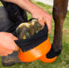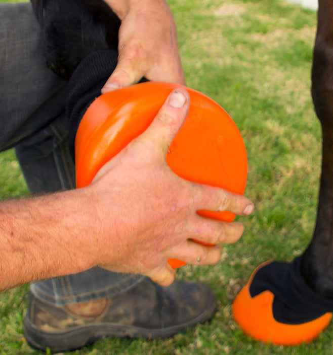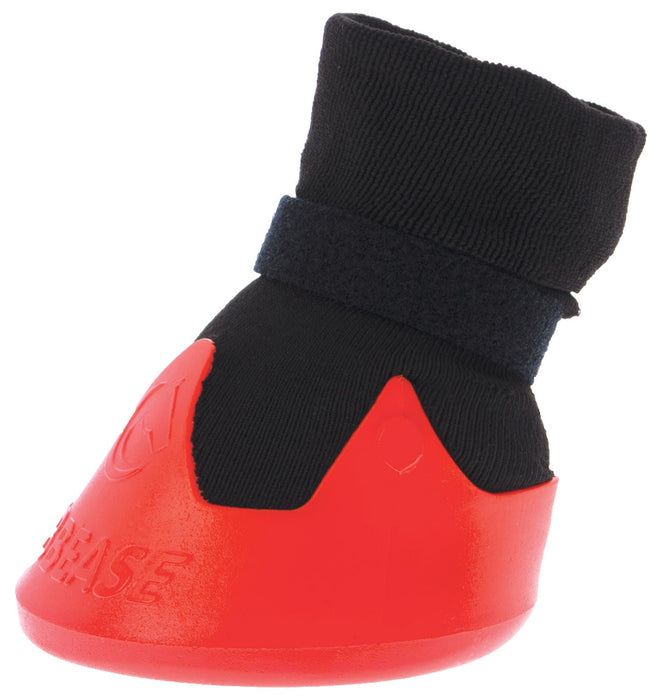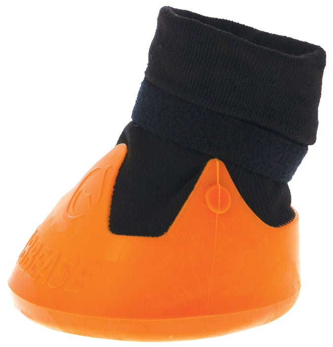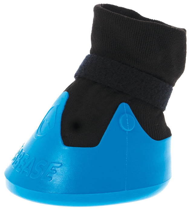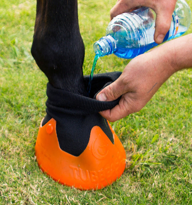 Tubbease was developed by a farrier trying to solve the problem of poulticing hoove without "stewing" them, as what happened with most regular "sealed" boots that he used. This rubber-dipped sock breathes while still protecting and soaking the damaged hoof. This breathability prevents the hoof from going soft during the treatment period. The soft conforming sock reduces the risk of skin chaffing. Made with a Velcro fastener for easy application and re-use.