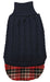 Experience a fresh twist on traditional with our Un-tucked Cable Sweater. This unique design combines the classic cable-knit style in navy with a modern edge. What sets it apart is the subtle peek of red plaid flannel that adds a touch of hipness to your dog's wardrobe.