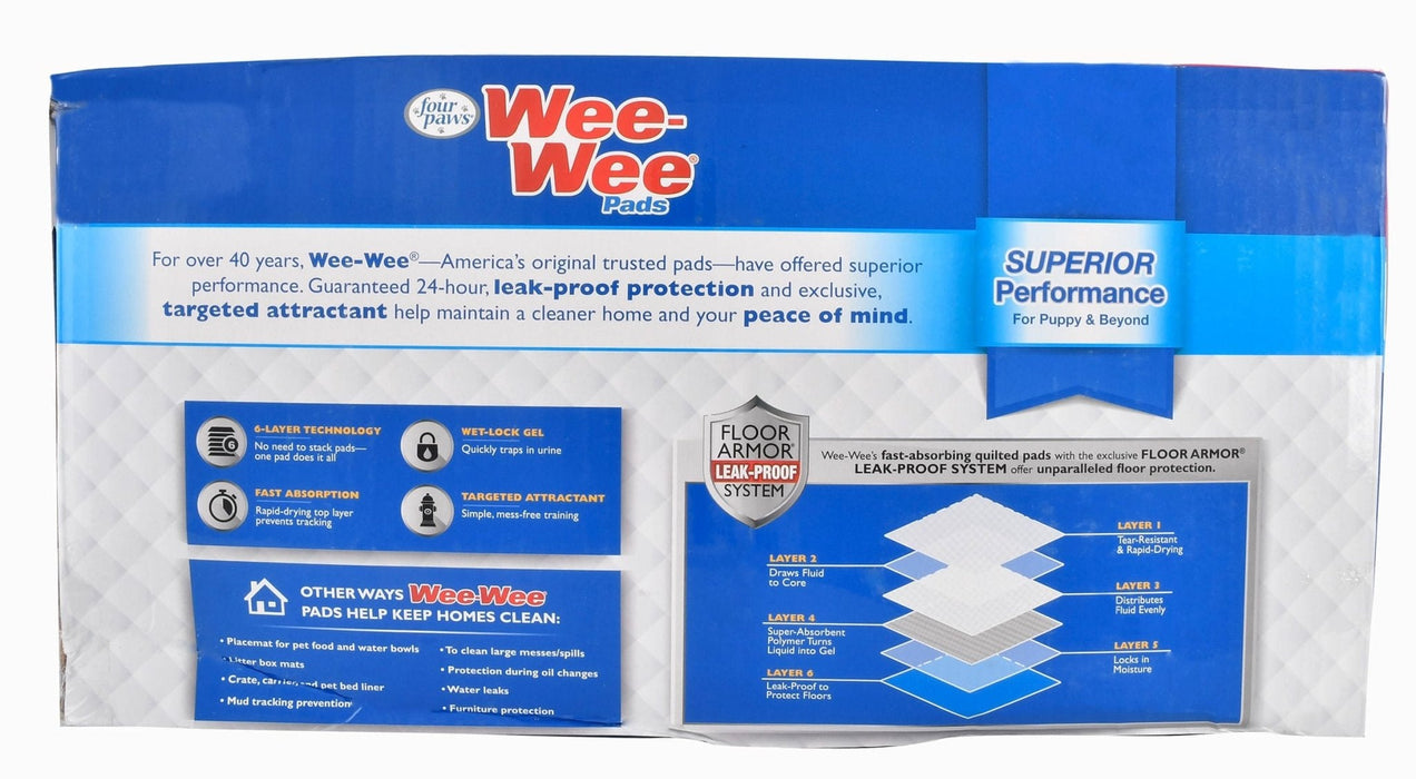 For over 40 years, Four Paws has been trusted for the finest-quality solutions that simplify pet parenting and keep fur friends happy, healthy, and clean. From the creators of America's original Trusted Pads Wee-Wee Superior Performance are 80% larger and more absorbent than average dog training pads!